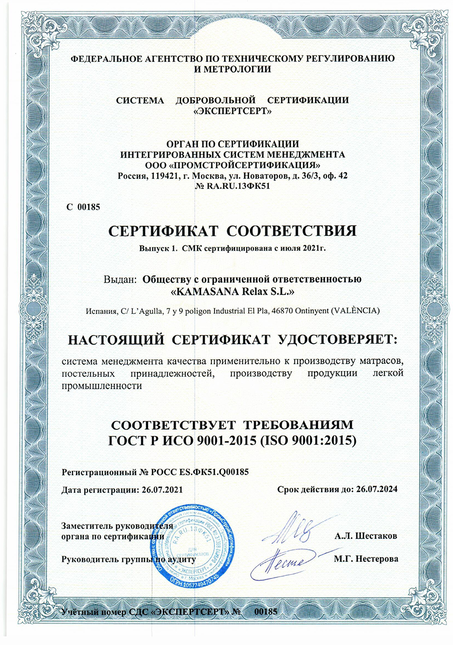 Гарантийные сроки от 18 месяцев до 60 месяцев, с даты, которая указана в накладной, в зависимости от модели матраса