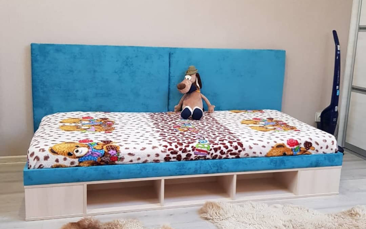 Покупала для мамы вместе с офигенным матрасом по акции. Кровать просто шикарная (не скрипит, стоит, как вкопанная), я заказала обивку ткань, смотрится, как маленький диванчик, очень стильно и красиво. Кинула подушки и сиди, как на диване. Посмотрим, как она будет в дальнейшем в эксплуатации.